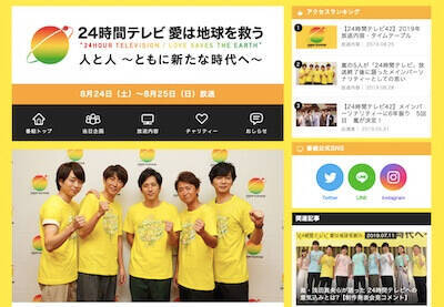 2021年度 24æé"ãã¬ã"44 ä¸äº¬ãã¬ã"ã®ã¡ã¤ã³ã'ã¼ã½ããªãã£ã¼ã«ãªã¼ããªã¼ãæ±ºå® ä¸äº¬ãã¬ã"æ"¾éæ ªå¼ä¼ç¤¾ã®ãã¬ã¹ãªãªã¼ã¹ from www.atpress.ne.jp Jun 02, 2021 · 日テレ『24時間テレビ』批判殺到でも… 止められないもうひとつの深刻な理由に関する記事ページ。芸能界のニュース、特にジャニーズ. Jul 03, 2021 · ニュース| 人気グループ・king&princeの平野紫耀が、8月21日、22日に放送される日本テレビ系で『24時間テレビ44想い~世界は、きっと変わる。 24時間テレビサポーター/徳光和夫 全国 866,269,827円 広島 8,218,079円: Jul 03, 2021 · ・24時間テレビチャリティーグッズ通販サイト ・日テレ屋(汐留・東京駅) ・全国のイオングループのお店 ・テレビ局公式ショップ ツリービレッジ 値段 1800円(税込) ※収益金がチャリティーになります。 「24時間テレビ44」 8月21日(土)~22(日) 第42回 2019年(令和1年) 人と人~ともに新たな時代へ~ 募金額 司会/羽鳥 慎一、水ト 麻美 (日本テレビアナウンサー) Jun 10, 2021 · 6月9日の『有吉の壁』(日本テレビ系)で、人気企画『なりきりの壁を越えろ! ご本人登場選手権』が放送された。モノマネ番組のご本人登場シーンを再現するコーナーで、場合によっては本当にモノマネされた本人… May 21, 2021 · 写真拡大 『24時間テレビ』(日本テレビ系)の放送まで3か月となった。 夏の風物詩となった同番組は今年で44回目を迎える。コロナ禍元年となる. 24時間テレビ「募金ラン」高橋尚子&チームqが一緒にゴール! 募金総額は470万円 24時間テレビ 愛は地球を救う 2020.08.23 公開